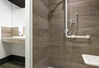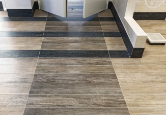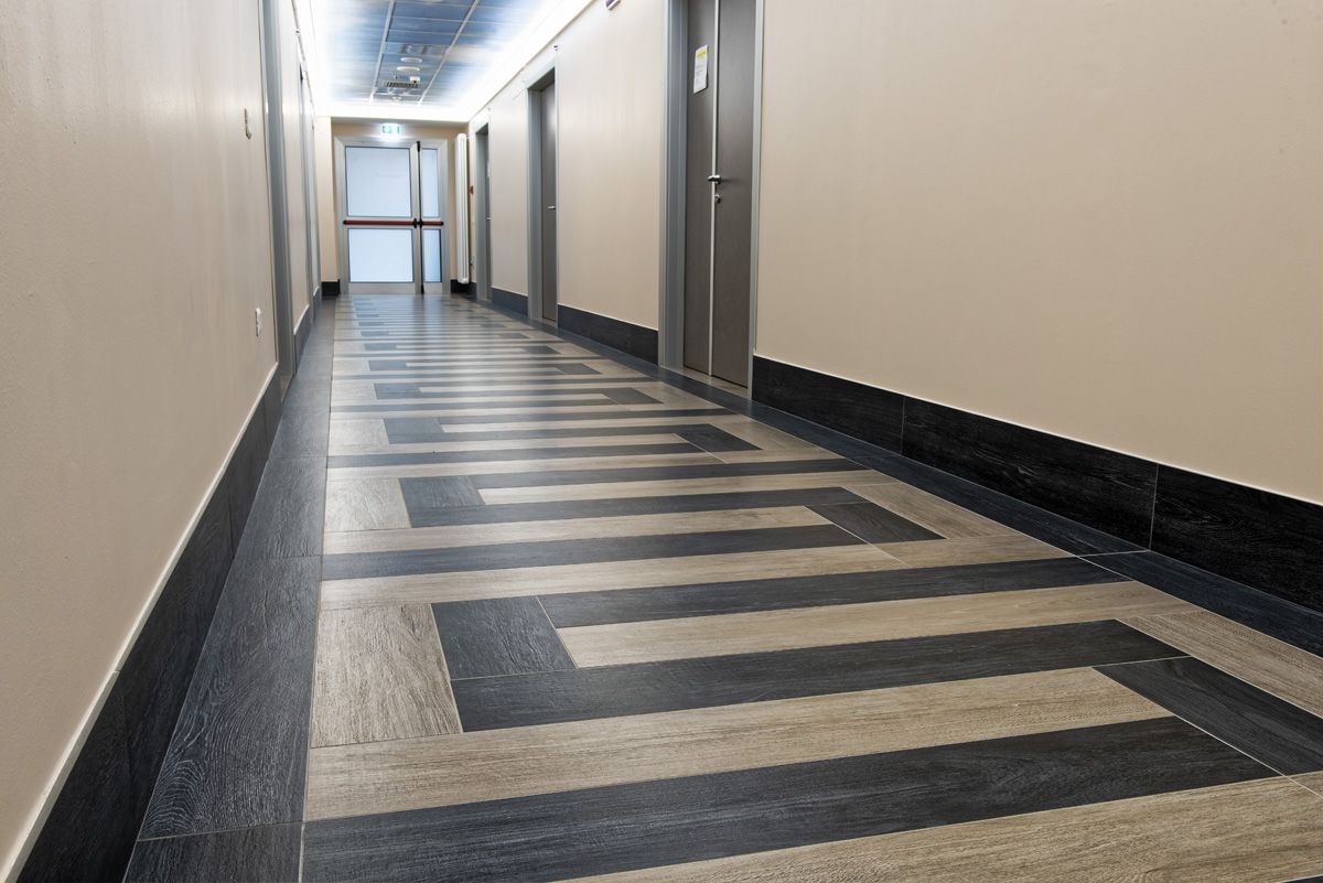 Iris Ceramica의 Active 처리된 French Wood 컬렉션의 6가지 색상 중 천연목재의 외관을 재현할 수 있는 120x20cm 크기의 세가지 색상, Larch, Elm, Ebony가 선정되었습니다. 이 자재의 특별한 점은 항균성입니다. 밀라노 대학교 화학과에서 Active 기술을 사용하여 생산된 세라믹 슬랍에 진행한 테스트 결과, 항균 기능은 영구적이고, 실내 오염물질 제거에 효과적이며, NOx를 포함한 공기 중의 입자의 개수를 감소시킵니다. 가장 일반적인 박테리아부터 항생제 내성을 가진 박테리아까지 모든 박테리아 종을 제거할 수 있습니다.